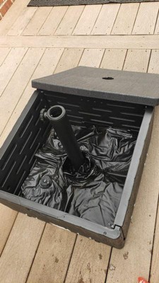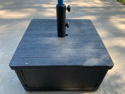 [This review was collected as part of a promotion.] I received this in exchange for my honest review. This combination umbrella base/plant box is very well made. It assembled easily with basic tools. The supplied liner can be filled with water to help keep it from turning over. Although we will using it as a planter I imagine it would work very well as the base. I would purchase this if needed in the future.
