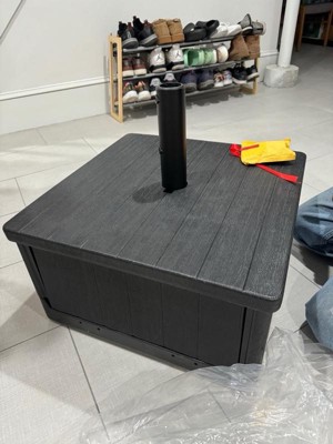 [This review was collected as part of a promotion.] This product was provided to me at no cost for my honest review. Got this thing together in minutes with about 20 screws that come in the box. Hardest decision will be how to use this because of its versatility as an umbrella base but deep enough to be a functional planter for practically any flower/vegetable. The finish has a wood like texture which I believe will be durable and age very well. There are some wheels on the bottom from one side so once this is setup all the weight should be managable by just tilting and repositioning. If you have low chairs on your deck to lounge on like I do it can serve as a small table to leave drinks/food on as well.