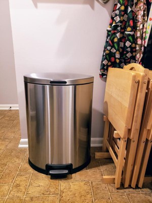 [This review was collected as part of a promotion.] I’ve been looking for a stainless steel garbage can. This is absolutely perfect!! The size is great!!! I love the foot peddle and the slow close!!! It fits in my kitchen great! I also love the size!! I hate taking out garbage all the time, this size lasts awhile