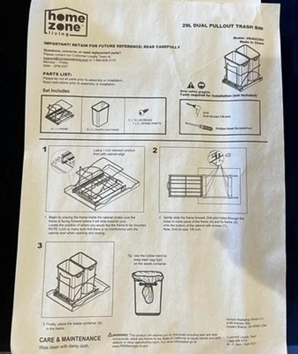 [This review was collected as part of a promotion.] Home Zone Living Pull Out Dual Trash Can for Recycling works really well. It is really great not to have all the garbage and recyclables not visible in the kitchen. So it is really nice hiding them under the sink. Easy to assemble.