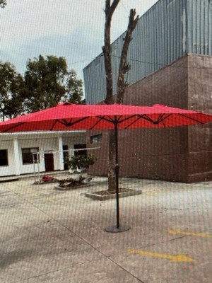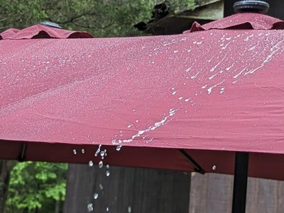 [This review was collected as part of a promotion.] This double sided umbrella is extremely sturdy and well-made. Even in wind that we thought would cause it to have issues, it stood tall and did not get damaged. The crank is easy to operate and the LED lights are a beautiful addition for hosting evening gatherings. A really well thought out product for those that like to spend time outside on their patios.