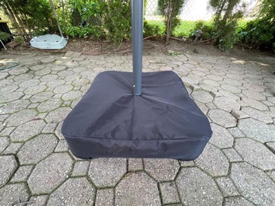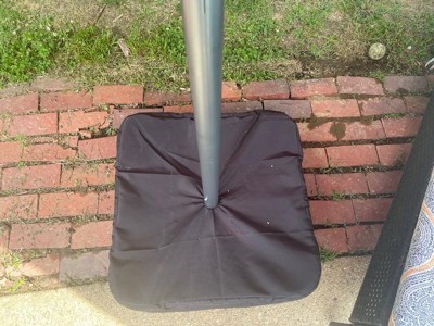 [This review was collected as part of a promotion.] This is a nice, large umbrella that offers a lot of shade and protection from both the sun and rain. The water beads up and just slides off the top. The sand bag pouches allow you to add as much weight as needed and is easier to use than a solid plastic base. The solar panel on top keeps the LED light charged, which is a nice convenient feature for relaxing evenings outdoors!