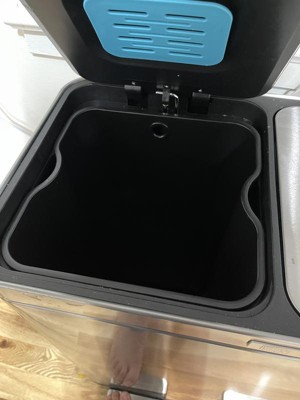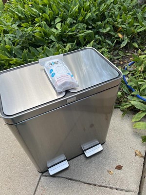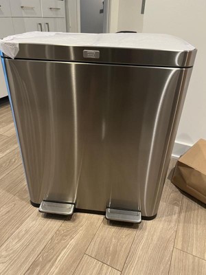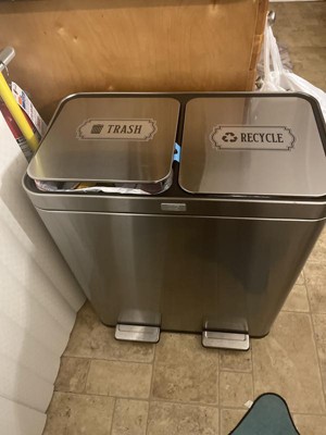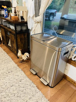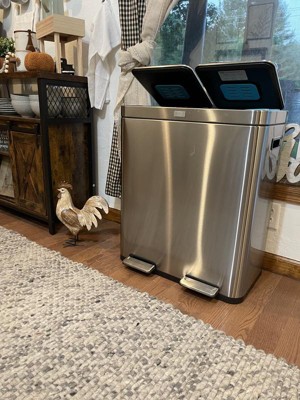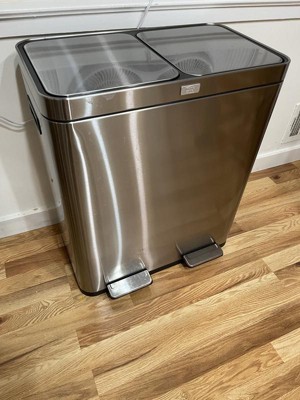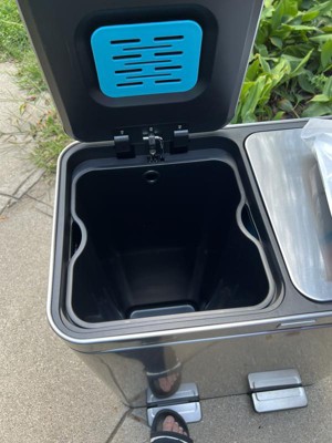 [This review was collected as part of a promotion.] I Chose the Home Zone Living 16 Gallon Dual Trash Can because it is a dual so that it makes recycling easy which helps save our earth. Also, it has an Oder control pod which is super great. Easy to open by placing foot on step pedal. Also, it closes quietly so no noise when closing. This trash container is so sleek! I get compliments on it each time someone sees it. Best part about this product is the inside container has a dip in the container so you don't have to fight to get container out. It's light weight and can hold up to 60 Liters. I'm am very happy with our dual trash can. I feel like it's the Alexa of trash containers. Very nice! No cons.