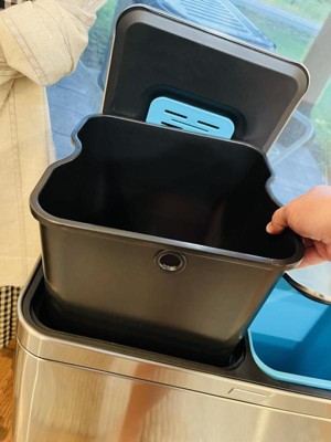 [This review was collected as part of a promotion.] I am so thrilled to have this dual Trash can in my house makes life much easier. We use to have a single trash can and all the recycling trash we would have to accumulate it on the side so we didn't have to do several trips to the outside can. Now it all goes into our dual trash can one side is for regular trash and the other to recycle. You just remove the recycling bin from inside and dump the recycling trash in your outside cans. You can use the regular 13gallon bag for the trash bin. It has two separate foot petals so each top opens individually and you don't have to open both at the same time. It has a beautiful and attractive look to it. Definitely this has been the best investment ever.