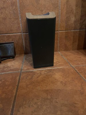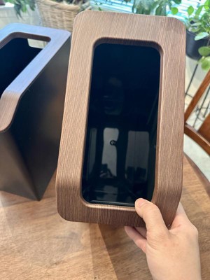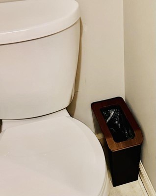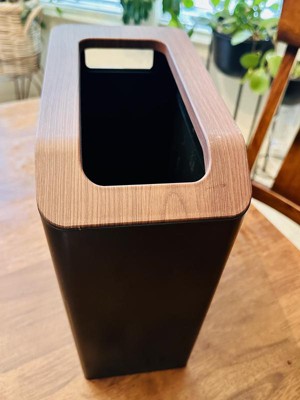 [This review was collected as part of a promotion.] I generally don’t get excited by trash cans but I honestly super happy with this 2 pack of slim waste bins. They look elegant with a black body and wood grain look top. The top comes off easily for emptying the bin. There is a small plastic removable rim inside that holds your waste bag in place securely. There is a handle on the back of the can to help you grip the basket when you are lifting it up out of a tight space. The trash cans fit wonderfully in the small spaces between toilets and walls and fits nicely under a bathroom sink or inside the chair opening of a desk if you’d prefer to hide your trash can or keep it super close. The trash cans are made of smooth plastic which make them easy to clean/sanitize. They are so very easy to use, unlike many of the more complicated small trash cans I have seen and tried, plus they are versatile and work in many different settings due to their slim size. Very happy to have these!