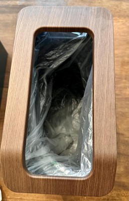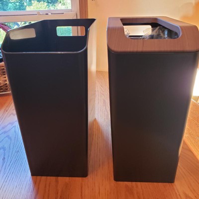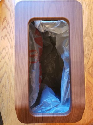 [This review was collected as part of a promotion.] I didn’t expect to get two of these! They are great. You can add a small plastic bag the. Put the “wood” top on to help hold it in place. The “wood” top gives it a bit more class than a normal trash can. Also helps to hid what’s in there. Easier to use than one with a flip lid.