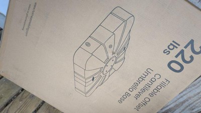 [This review was collected as part of a promotion.] This is an amazing umbrella holder. It's 220lbs filed and preassembled so all you need to do is unbox it and fill it with water or sand. It's a great size that will fit up to a 11ft umbrella of all different sizes and styles including the offset ones. It's stunning and works very well. We were only able to test it with a smaller sized umbrella but it worked wonders and we just ordered a larger one for it this week and excited to us it; it's very sturdy, has wheels for easy transfers and it's durable! It's honestly a must have for stand alone umbrellas