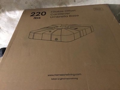 Home Zone Living 220lbs Offset Cantilever Roma Pre-Assembled 34" Square Heavy Duty, Umbrella Base Stand, Rolling Wheels, Supports Up to 11 Ft Umbrella
