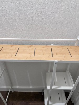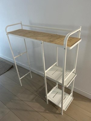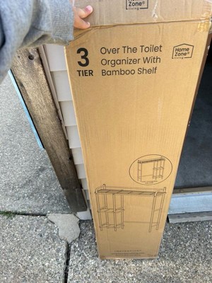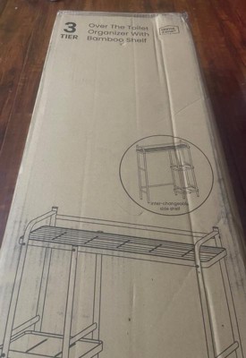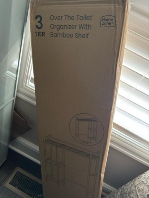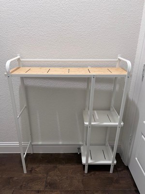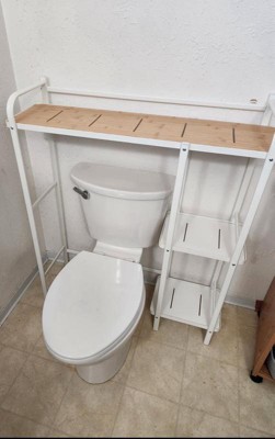 Home Zone Living Over-the-Toilet 3-Tier Storage Organizer with Bamboo Accent Top and Steel Frame, Freestanding Bathroom Shelf, White Finish
