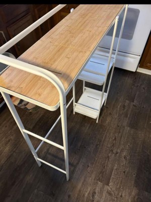 [This review was collected as part of a promotion.] This was I would say decently easy to put together. Not a complete piece of cake, but not hard. It does not come with tools so you need those! I only used a screwdriver although instructions say to use a drill. Overall I think the quality is pretty decent! I think the bamboo shelf on the top could use a middle set of screws to keep it down more in the middle but it isn’t awful by any means. I think it’s cute and decent for the price!