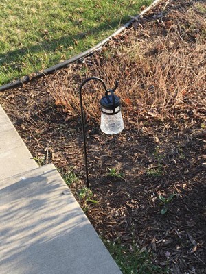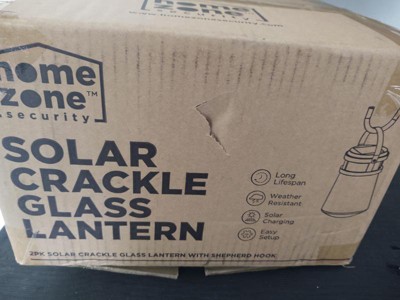 Home Zone Security® 10-Lumen Solar Crackle-Glass LED Lantern Path Lights with Shepherd Hook, 2 Pack in Black