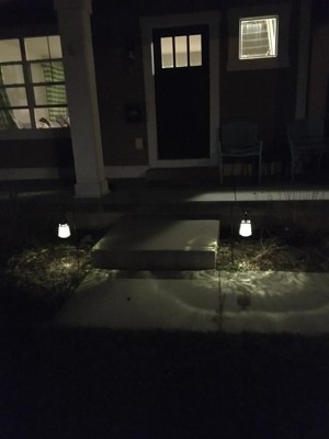 [This review was collected as part of a promotion.] I love these lights. They look really nice in front of my house on my walkway. They give enough light to see where your going without blinding you. They look really nice and makes my home look better.