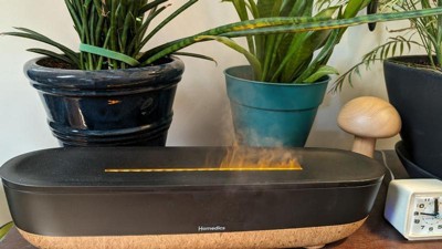 The HoMedics Fireside Ultrasonic Cool Mist Humidifier features a realistic flame-effect mist for ambiance and style. Its 0.26-gallon tank provides up to 12 hours of runtime with automatic shutoff when water is low. Enjoy 3 adjustable mist and light settings, all in a low-profile design that complements any decor. Perfect for creating a cozy, soothing environment.