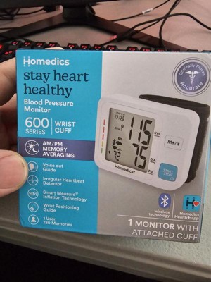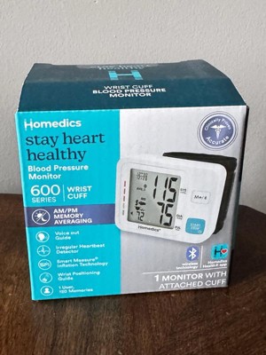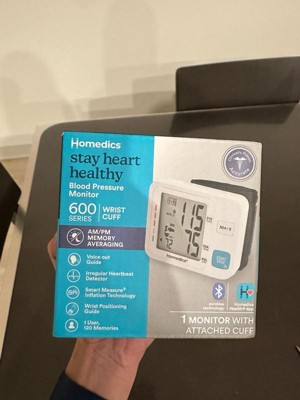 [This review was collected as part of a promotion.] The Homedics Wrist 600 Series is a smart, user-friendly blood pressure monitor packed with helpful features. The Voice Out Guide provides spoken instructions and readings, making it easy to use. Smart Measure technology ensures comfortable, accurate readings, while Cuff Fitness Alerts help with proper placement. It also detects irregular heartbeats and stores 120 readings with averages for tracking trends. The Bluetooth connectivity syncs with the Homedics Health+ App for easy monitoring. The large LCD display is clear and well-lit. Proper wrist positioning is key for accuracy, but the wrist guide helps.