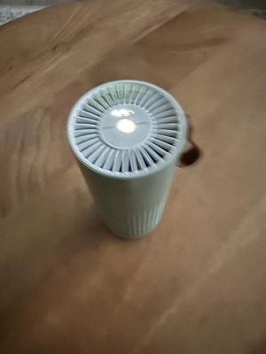 [This review was collected as part of a promotion.] This portable air purifier is conveniently sized for my desk. The sage color (white background photo shows true color) is understated and appealing. The air purifier charges easily via the provided USB C cable. There are three intensity settings-the lowest setting blends into the background, but the second and highest settings are more obvious. This has a carry strap which I like so I can move it to my vehicle with busy hands, where it fits perfectly in my cup holder. There are felt pads included if you want to scent them with essential oils. The filter says to change every couple months.
