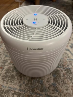 Breathe better with the Homedics Air Purifier, featuring 3-in-1 purification that removes up to 99.97% of airborne allergens as small as 0.3 microns. The True HEPA filter, activated carbon odor filter, and prefilter work together to reduce odors, VOCs, and larger particles. Enjoy aromatherapy with the included essential oil tray with 3 pads, 3 fan speeds, plus whisper-quiet operation. Convenient carry handle make it effortless to use anywhere. Ideal for small to medium sized rooms, this purifier refreshes the air in just minutes. Enjoy consistent, long-lasting air filtration.