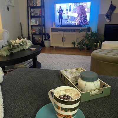 The cutest ottoman! I’m using it as a coffee table and it’s perfect. The green color is gorgeous