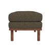 It’s cute, not green like in the picture, definitely true to the label of “brown”. The legs, no matter how much you tighten them will wobble and be askew with even moderate use. Bummed cause I like it even though my husband things the Boucle just looks like pilling and my sister says it looks like a suitcase, haha. The top cushion is velcroed on and actually has a zip so theoretically you could take it off and wash it which is cool tho not sure how well that would work.
