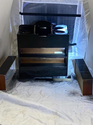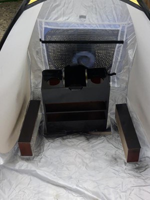 [This review was collected as part of a promotion.] It make a great mini spray booth . I just wished it came with a rack inside to support say 15 lbs .That way you could hang small parts and be able to spray all the way around .........................