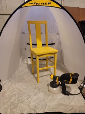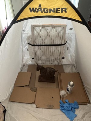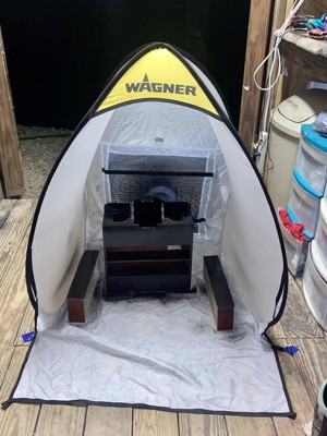 [This review was collected as part of a promotion.] I make a lot of crafts and spray a lot. The Wagner small spray tent is just what I needed. It’s a great size, fits on a table or the ground and there’s even a place to put a filter and an exhaust fan which is definitely a must for me since the majority of the time I spray in my shed. The tent is light weight and is very easy to set up and fairly easy to fold back up and put it in the bag it came in. Overall, this tent is great and I would definitely recommend it!