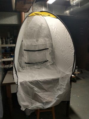 [This review was collected as part of a promotion.] This is a well made, great little shelter. My wife does a lot of craft work in the basement. If she wanted to use spray paint, she would need to go outside and hope for a calm weather day. It contains the overspray well, and keeps the item protected from the kids until it's fully dry. The only issue I have is I wish I would have gotten a bigger one!! You will definitely like it for small jobs.