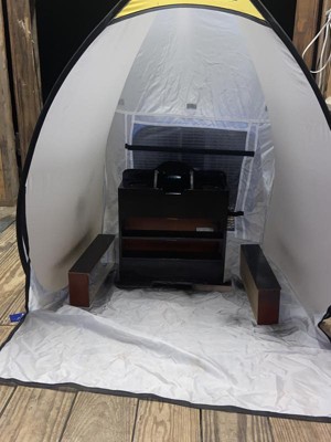The Small Spray Shelter is a tent-like structure that creates a safe, contained area for spray painting or staining, helping to protect your surroundings from overspray drift. Ideal for use with paint sprayers, aerosol cans, and more, it includes built-in straps for attaching an optional fan and filter, perfect for improving airflow and capturing overspray during projects.