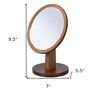 HomeRoots 10" Brown Round Framed Makeup Shaving Tabletop Mirror