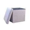 - Featuring a modern cube shape, this gray storage ottoman effortlessly complements any space.
