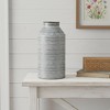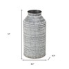 With or without flowers, this 13-inch gray galvanized steel geometric patterned cylinder jug vase makes a great gift or decorative accent for your space. The purposeful whitewash and distressing adds a touch of rustic charm and unique character to any decor. Crafted from durable galvanized steel, this jug vase brings both style and resilience to your home. Its cylinder shape allows for versatile display options, creating an eye-catching focal point in any room. Perfect for adding a rustic, boho chic flair to various interior styles, this vase is a must-have addition. 13.00-inch h x 6.50-inch w x 6.50-inch d.