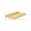 Freshen up your space with this convenient and good looking 16" gold rectangular wood handmade tray with handles! This gorgeous rectangular tray is made from genuine wood providing both durability and a classic look. Designed with handles for easy transport and convenience. This tray has a food safe finish. 2" H x 15.75" W x 9.5" D