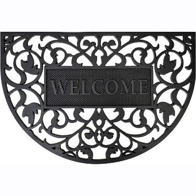 Ready to withstand heavy foot traffic, this 17-inch x 41-inch black scrollwork outdoor rubber door mat is an ideal option for the front door or entrance way of your home or business. Crafted from rubber, this mat is not only functional but is a visually appealing accessory to welcome people to your home or business. Add this decorative mat to create a practical yet inviting welcome to all who enter. 17-inch h x 41-inch w x 0.4-inch d.