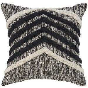 The 18-inch black and off white throw pillow is the perfect decorative accessory for your home. This black and off white hued piece represents quality construction, expertly made from durable cotton that is not only long lasting but soft to the touch as well. This soft polyfill filled pillow not only is decorative but made to be comfy and cozy all day long. Great to use on its own or mix with other decorations for the perfect look. Decorative throw pillows not only add color and dimension to your space but can be comfy and supportive when you are lounging and cuddling as well. 18-inch h x 18-inch w x 6-inch d.