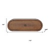 Give your room the look and feel of 5-star accommodations with this 18-inch chestnut solid wood oval one drawer floating nightstand. Maximize your floor space and adjust to the exact height you need, when you add this wall-mounted design to your space. Made of high quality solid mango wood that is built to last. The easy open drawer allows you hidden storage to keep your essentials close at hand. The unsung hero of the bedroom, this nightstand is perfect for keeping a glass of water, lamp, alarm clock, jewelry, and more, close by and easily accessible. 5.90-inch h x 17.70-inch w x 12.60-inch d.