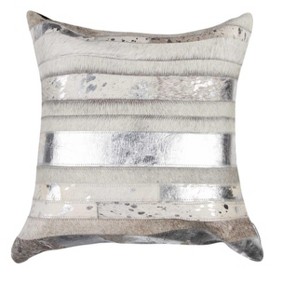 Bring a bit of fashion and zip to your space with this eye-catching and comfy 18-inch gray and silver striped cowhide throw pillow. Indulge in a bit of luxury with this gray and silver striped decorative pillow covered with high grade, genuine cowhide. Elegantly chic, this pillow is the epitome of luxury. This soft polyester filled pillow not only is decorative but made to be comfy and cozy all day long. Decorative throw pillows not only add color and dimension to your space but can be comfy and supportive when you are lounging and cuddling as well. Decorative pillows are a great way to change up the look and feel of your space easily and quickly. 18-inch h x 18-inch w x 5-inch d