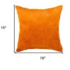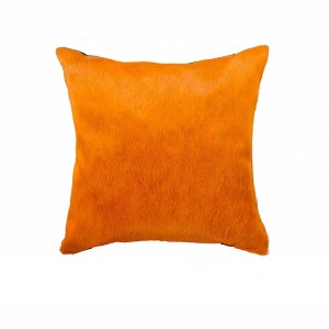 Add an air of fashion to your room and rejuvenate the space with this cute and fashionable 18-inch orange cowhide throw pillow. This luxuriously soft pillow is expertly made of high grade, genuine cowhide in a orange coloration. Elegantly chic, this pillow is the epitome of luxury. Super soft and built to hold its shape, this cotton pillow is a great option. Decorative throw pillows not only add color and dimension to your space but can be comfy and supportive when you are lounging and cuddling as well. Decorative pillows are a great way to change up the look and feel of your space easily and quickly. 18-inch H x 18-inch W x 5-inch D