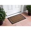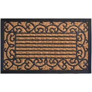 Ready to withstand heavy foot traffic, this 18-inch x 30-inch brown and black rubber scrollwork outdoor door mat is an ideal option for the front door or entrance way of your home or business. Crafted from rubber, this mat is not only functional but is a visually appealing accessory to welcome people to your home or business. Add this decorative mat to create a practical yet inviting welcome to all who enter. 18-inch H x 30-inch W x 0.25-inch D