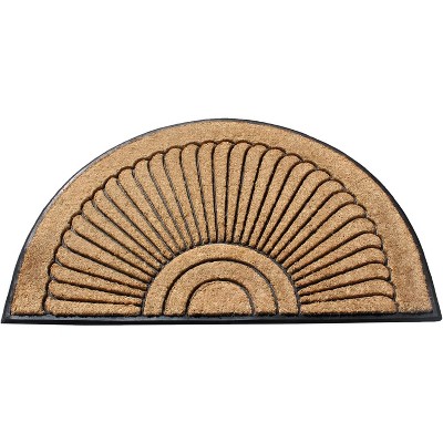 Known for it's extreme durability and ability to withstand heavy foot traffic, this 18-inch x 30-inch brown coir geometric outdoor semi circle door mat is an ideal option for the front door or entrance way of your home or business. Crafted from galvanized metal and coconut husks, this mat is not only highly functional but is an an eco-friendly and visually appealing accessory. The naturally bristled texture of coir is an efficient way to clean dirt and mud from shoes and is easy to clean and maintain. Add this decorative mat to create a practical yet inviting welcome to all who enter. 18-inch h x 30-inch w x 1-inch d.