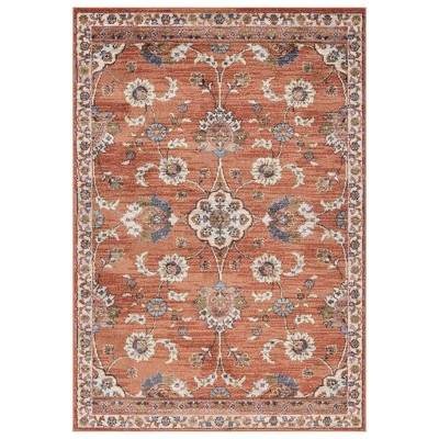 HomeRoots 2' X 3' Blue and Orange Floral Stain Resistant Indoor Outdoor Area Rug