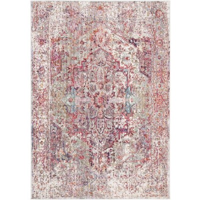 HomeRoots 2' X 3' Blue Orange And Pink Oriental Hand Woven Area Rug With Fringe