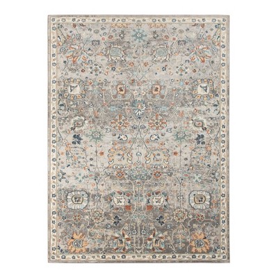 HomeRoots 2' X 3' Gray and Orange Floral Stain Resistant Indoor Outdoor Area Rug