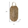 HomeRoots 20" Natural Distressed Woven Glass And Wicker Floor Lantern Candle Holder