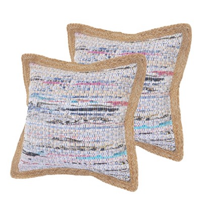 - Hand-woven square pillow cover and insert in a refreshing blue color.