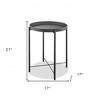 Optimize your space and add some charm to your room with the 21" gray aluminum round end table. This table is made from aluminum in a gray color throughout the base and top. An ideal location for placing your snacks and drinks, and a place to keep your lamp, frames, or other accessories. You can also use it as an entryway table to hold your keys. 21" H x 17" W x 17" D
