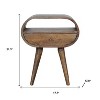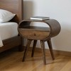 Good looking design and practical styling meet to form this 21-inch light brown solid wood round one drawer nightstand. Sturdy and durable construction from solid mango wood ensures this trusty bedside table is built to last. Features a unique oval shape with easy open drawer allows you hidden storage to keep your essentials close at hand. An easy-access shelf gives you additional storage and display space. The unsung hero of the bedroom, this nightstand is perfect for keeping a glass of water, lamp, alarm clock, jewelry, and more, close by and easily accessible. Versatile in use this nightstand would also work as a great end table in the living room, hallway, or office. 21.30-inch h x 17.70-inch w x 13.80-inch d.