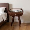 Good looking design and practical styling meet to form this 21-inch walnut solid wood oval one drawer nightstand. Robust in design, the bed side table has been expertly crafted from solid wood. Includes a drawer to help keep your essentials close by and hidden. An easy-access shelf gives you additional storage and display space. The unsung hero of the bedroom, this nightstand is perfect for keeping a glass of water, lamp, alarm clock, jewelry, and more, close by and easily accessible. Nightstands are obviously great beside the bed but can be used just as easily to help battle clutter in your living room, hallway, office, or dining room. 21.30-inch h x 17.70-inch w x 13.80-inch d.