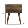 Give your room the look and feel of 5-star accommodations with this 22-inch natural solid wood distressed two drawer nightstand. Sturdy and durable construction from solid wood ensures this trusty bedside table is built to last. Includes 2 drawers to give you multiple storage options to keep clutter at bay. This piece is purposefully distressed to give a worn, rustic/vintage finish. The unsung hero of the bedroom, this nightstand is perfect for keeping a glass of water, lamp, alarm clock, jewelry, and more, close by and easily accessible. Look no further than this nightstand to accommodate all your needs and upgrade the style of your bedroom. 21.70-inch h x 17.70-inch w x 13.80-inch d.