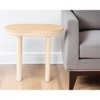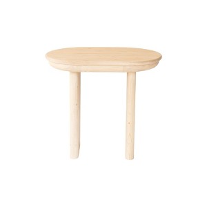 Distinctive in style the 22-inch natural solid wood oval sled end table radiates a versatile charm. Made of solid pine wood, the natural coloration throughout gives this piece an updated and refreshing look. Side tables are a great way to flank your sofa, use as an accent next to your favorite chair, or can even be used bedside. You can match it with other pieces to get the ideal look for your place. 22-inch h x 24-inch w x 16-inch d.