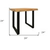 Optimize your space and add some charm to your room with the 24-inch black and natural distressed solid wood and iron square end table. The black coloration of the high quality iron base marries nicely with the natural solid wood top. The purposefully distressed finish gives this table an authentically rustic feel. A great accent on either side of the sofa or bed, this adorable end or side table is just what you need. You can also use it as an entryway table to hold your keys. 24-inch h x 24-inch w x 24-inch d.