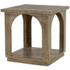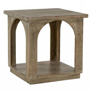 Show off your exquisite taste with this 24-inch brown distressed solid wood square floor shelf end table. This table is made from solid wood in a brown color throughout the base and top. The purposefully distressed finish gives this table an authentically rustic feel. A great accent on either side of the sofa or bed, this adorable end or side table is just what you need. You can match it with other pieces to get the ideal look for your place. 23.5-inch h x 23-inch w x 23-inch d.