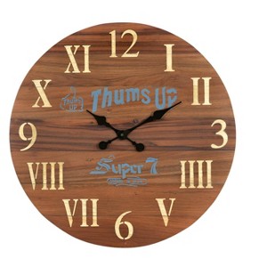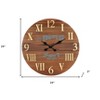 HomeRoots 24" Brown Solid Wood Silent Analog Round Wall Clock